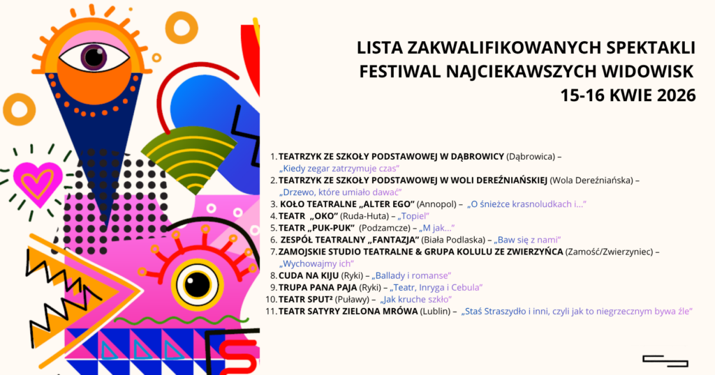 🎭 Znamy już spektakle, które wezmą udział w Festiwalu Najciekawszych Widowisk – finale 25. Wojewódzkiego Przeglądu Teatrów Dziecięcych i Młodzieżowych