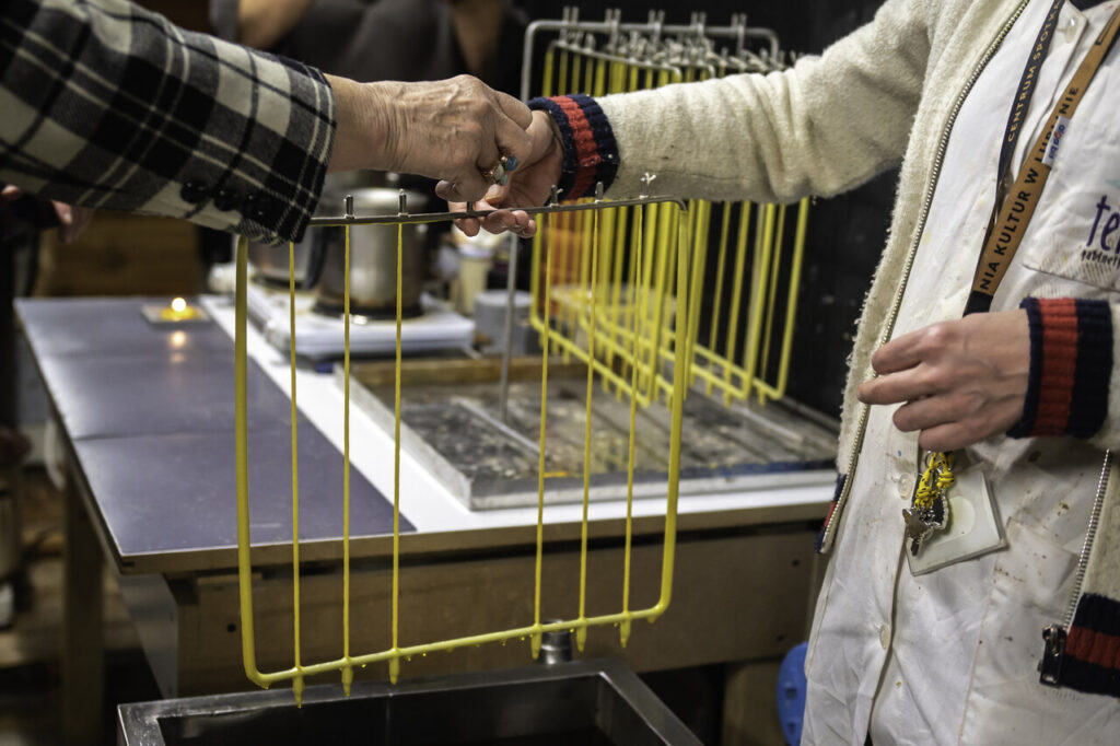 Pracownia Pszczelarska na poziomie -2 to techniczna przestrzeń pracy, w której odbywa się pozyskiwanie i przetwarzanie produktów pszczelich: miodu, wosku i kitu pszczelego. Jeśli grupy nie są liczne (do 12 osób) organizujemy tu warsztaty, podczas których w naturalnych warunkach pracujemy z woskiem pszczelim. Uczymy jak z czystego wosku czerpać świece, jak skręcać je z węzy pszczelej, czy też przygotowywać prostą maść woskowo-olejową do pielęgnacji skóry.